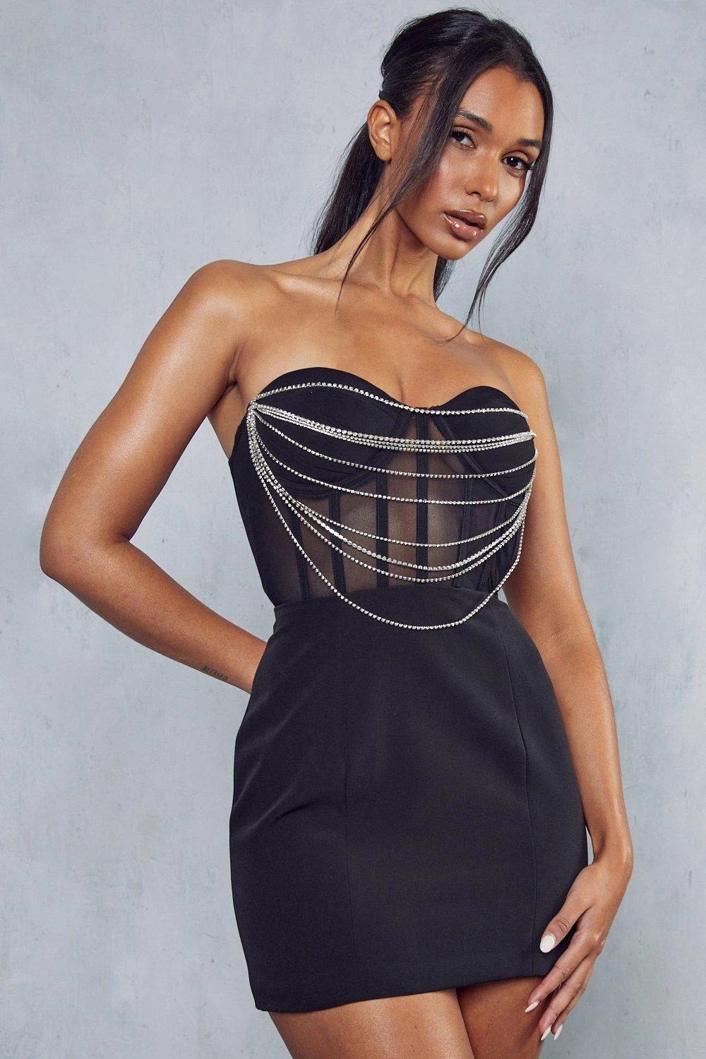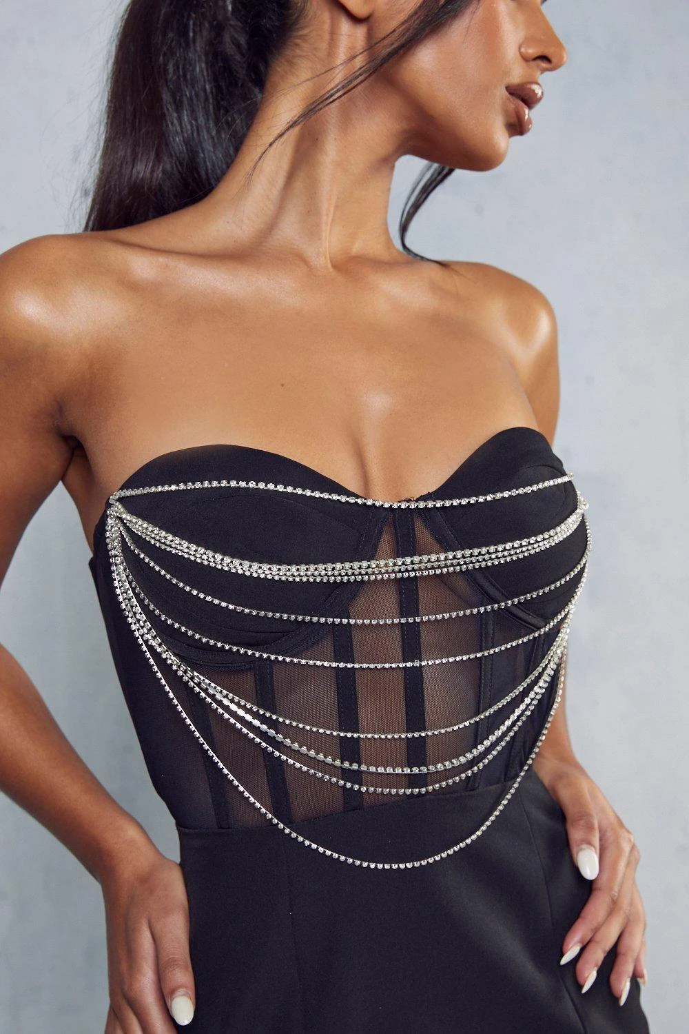 Be the first to review “Diamante Drape Corset Bandeau Mini Dress” Cancel reply