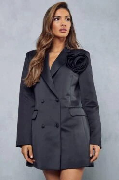 Be the first to review “Lexi Wood Detachable Corsage Satin Blazer Dress” Cancel reply