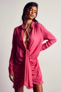 Be the first to review “Linen Look Draped Shirt Dress” Cancel reply