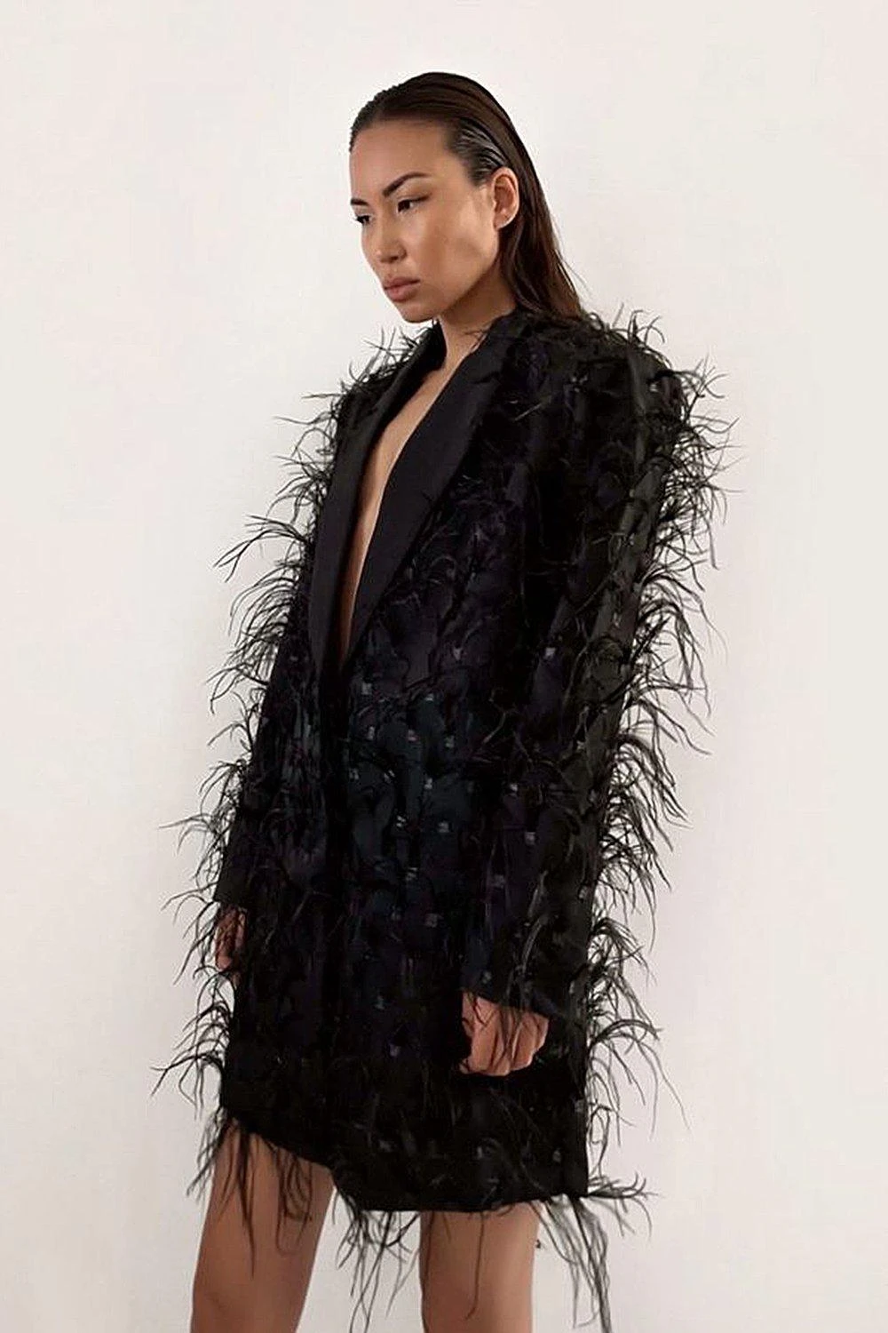 Find the perfect combination of tailored glamour and sophistication with this premium feather detail blazer dress. Cut to resemble a traditional suit jacket, this soft tailored, premium satin lined blazer dress will bring an air of class and poise to your outfit. Featuring hand stitched feather detailing, this premium blazer dress will be your new go-to.