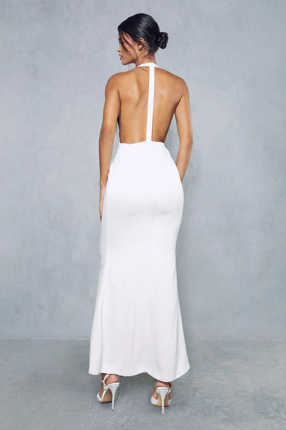 Premium Satin Pleated Halterneck Open Back Maxi Dress